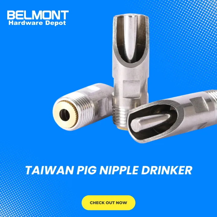 Ensure your pigs get the clean water they need with the Taiwan Pig Nipple Drinker, available now at Belmont Hardware Depot.